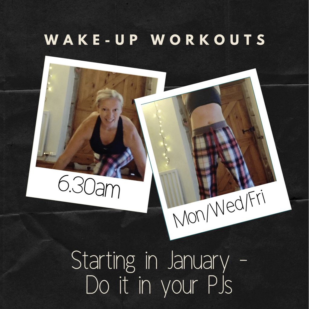 WAKE-UP WORKOUTS are your answer……do them in your PJs – all you need is Facebook – 6.30am for 10 minutes.