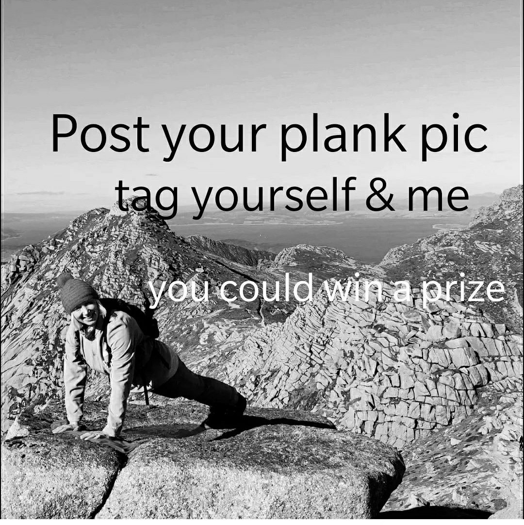 I’m after your PLANK pictures……any where, any how, with whoever you like. The more spectacular, the better!! Post your photo & tag me & yourself in it. It can be on any social media (Instagram, facebook, blog, tik tok etc ) or even if you send me a picture, I can share it for you.